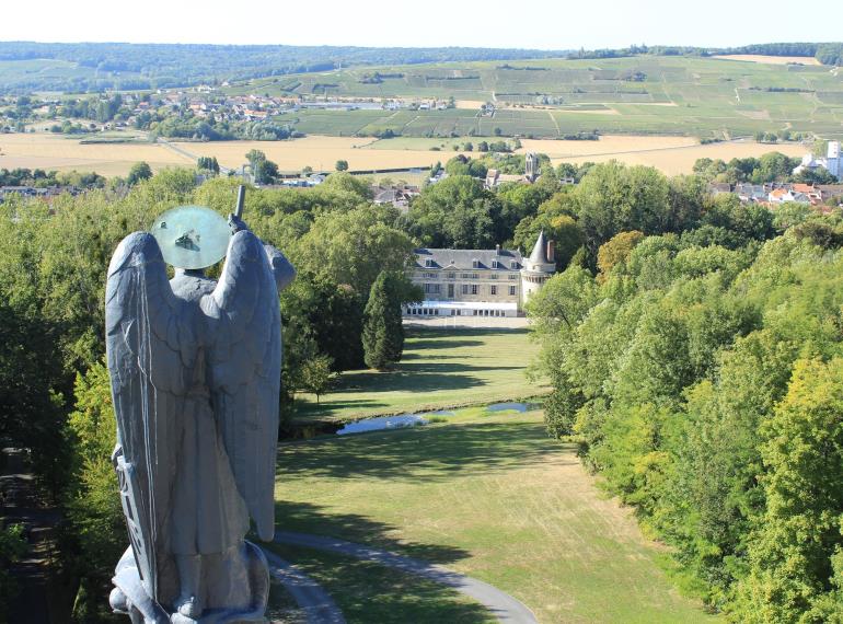 Dominant la vallée de la Marne du haut de ses 52 mètres, le Mémorial de Dormans veille sur l’histoire des deux batailles qui ont marqué la région. Choisi par le maréchal Foch pour sa valeur symbolique, ce lieu invite à un voyage à travers le souvenir des soldats tombés.On commence par descendre dans la crypte, un espace silencieux où reposent les vies sacrifiées, avant de suivre le cloître qui mène à l’ossuaire abritant 1 500 soldats de différentes nationalités. La chapelle, baignée de lumière, offre un moment de calme et de recueillement. Enfin, après 105 marches, la vallée se dévoile dans un panorama vaste et paisible, comme une récompense après la traversée de l’histoire.Entouré d’un parc de 26 hectares, le Mémorial accueille également des expositions et des manifestations, donnant à chacun l’occasion de se souvenir, d’apprendre et de mesurer la valeur de la paix.
