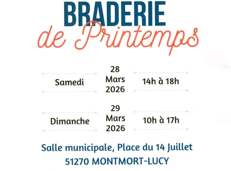 Le Secours Catholique organise sa Braderie de Printemps, les Samedi 28 et dimanche 29 mars 2026 à la salle municipale de Montmort-Lucy !