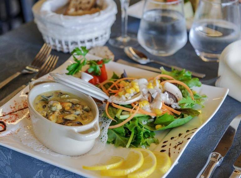Venez régaler vos papilles au Bateau Lavoir ! Idéalement situé en bord de Marne à quelques kilomètres de Reims et d’Épernay, une équipe dynamique et souriante vous accueille dans un cadre agréable et convivial. Côté cuisine ? La Maison est spécialisée dans les plats locaux cuisinés avec des produits de la région et de qualité. Envies de bulles ? La carte des champagnes du restaurant fait honneur à la région. Venez les déguster au bar ou lors d’un repas depuis leur salle panoramique donnant sur la Marne. Un grand parking de 50 voitures, qui peut accueillir bus et camions, est à votre disposition. 3 salles - Terrasse - Ouvert le midi du mardi au dimanche et le soir vendredi et samedi -Pour les fêtes de fin d'année, le Restaurant propose un repas à emporter :Petits fours***Terrine de foie gras au Ratafia de Champagne,confiture de figues et pain briochéOUcroustade de ris de veau aux pleurottes***Coquille de Saint Jacques et écrevisses rouges au Champagne et son accompagnementOUsuprême de chapon au Champagne et son accompagnement***Entremet chocolat pralinéOUEntrement passion cocoTarif : 58 €Terrine de foie frais au Ratafia de Champagne500 gr : 55€ / 1kg : 110€
